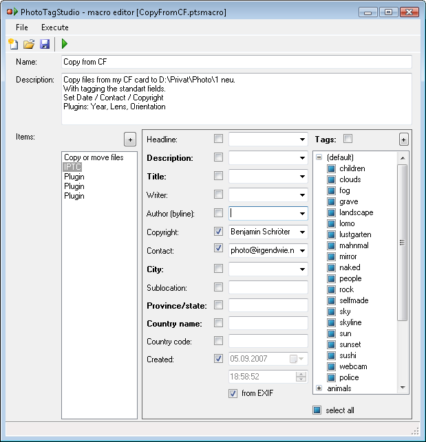 With more and more features and functions of PTS there were more and more operations to execute every time you take new photos. With a macro you can combine all these operations to one macro and execute it with only one mouse click every time you want to.