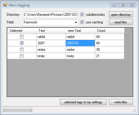 Most of the IPTC tags are text fields and can contain any text you want. To create a well sorted photo collection it helps a lot to care about the consistency of the tags before you start. I tagged 1000 photos and then decided to always use the singular (tree) instead of the plural form (trees).